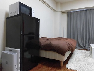 お部屋にはベッドやクリーニング済のお布団、シーツ、TV、冷蔵庫、洗濯機、食器類、アメニティなど必要なものはすべて揃っていますので、お着替えの入ったカバンひとつでお越しいただけます。 -